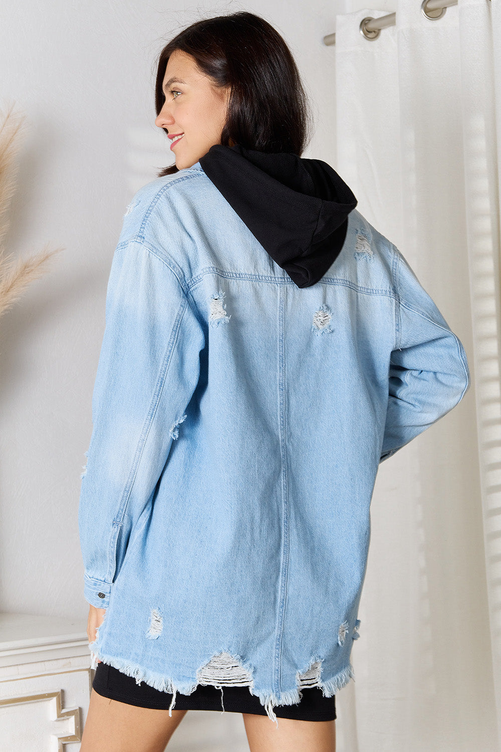 RISEN Full Size Distressed Raw Hem Denim Jacket